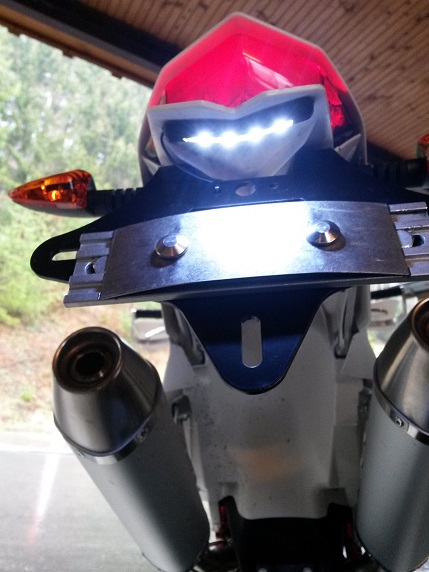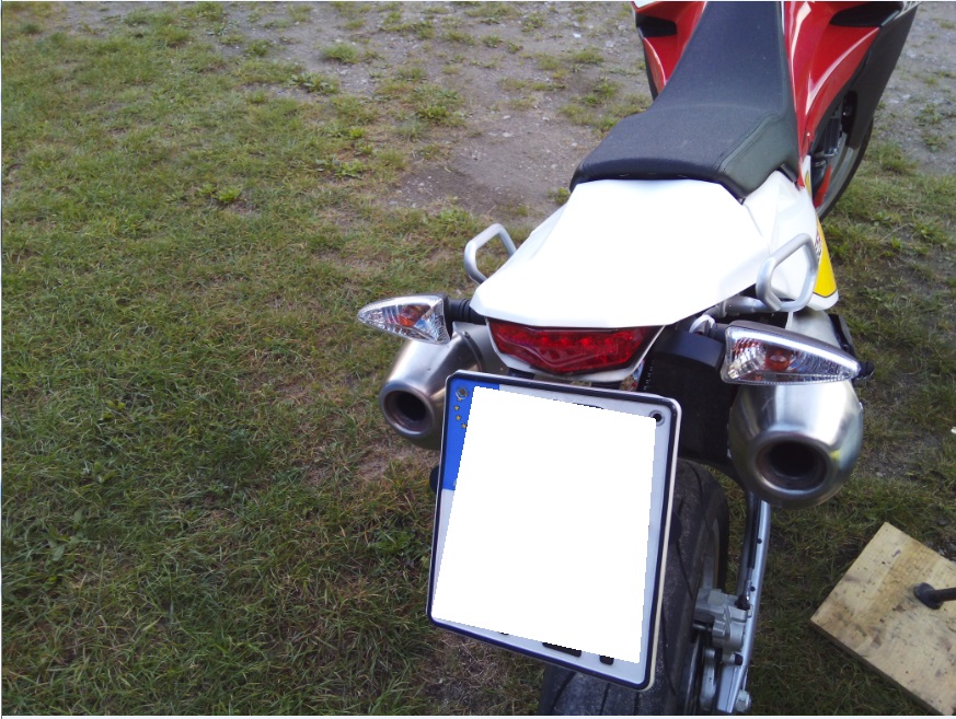 - Kennzeichenhalter http://racing-unlimited.de/sho…ltj51eeprp36in9ngbrjogag2 passt perfekt auf die originalen Anschraubpunkte. Sogar die Blinker können dran befestigt werden. Den roten Rückstrahler habe ich direkt an das Nummernschild gemacht, da ich mit CH-Wechselkennzeichen fahre