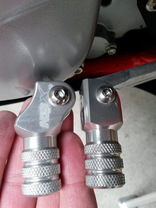 - Schalthebelverlängerung von http://racing-unlimited.de/sho…ltj51eeprp36in9ngbrjogag2 da ich u.a. auch noch etwas grössere MX Stiefel habe. mit dem +10mm Ausleger hat der Stiefel auch besser unter dem Hebel Platz. Der originale Ausleger muss leider ausgebohrt werden, da er genietet und nicht verschraubt ist.