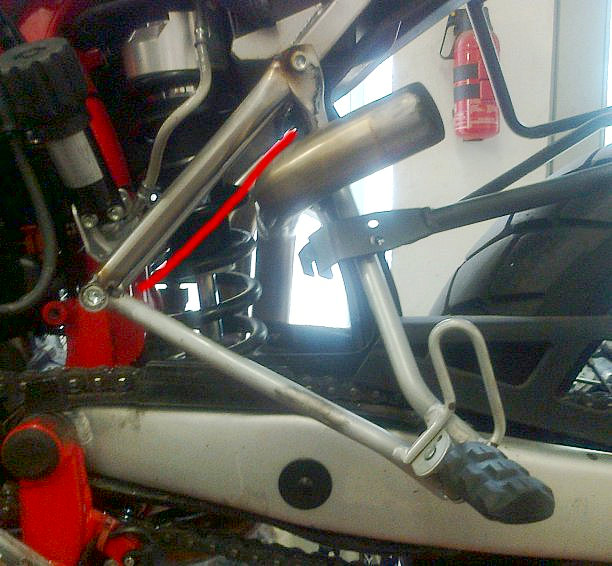 Der Soziusfußrastenträger ist separat am Heckträger verschweißt.