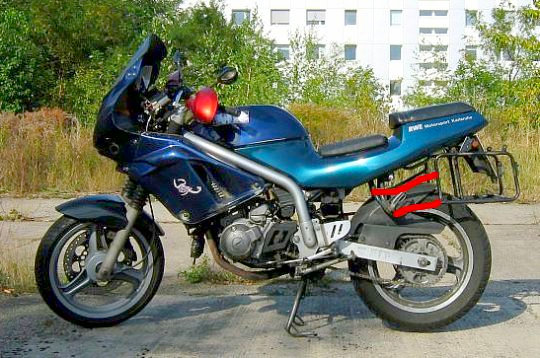 #48 Für die SD gab es eine andere Kofferträgerbefestigung, unten im Fußrastenträgerdreieck.