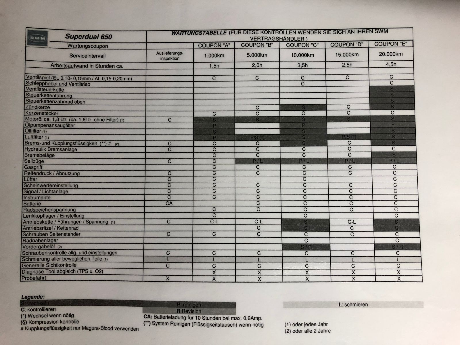 1. Inspektion bei 1000km (was zu tun ist, siehe Wartungsplan) -> 1,5h