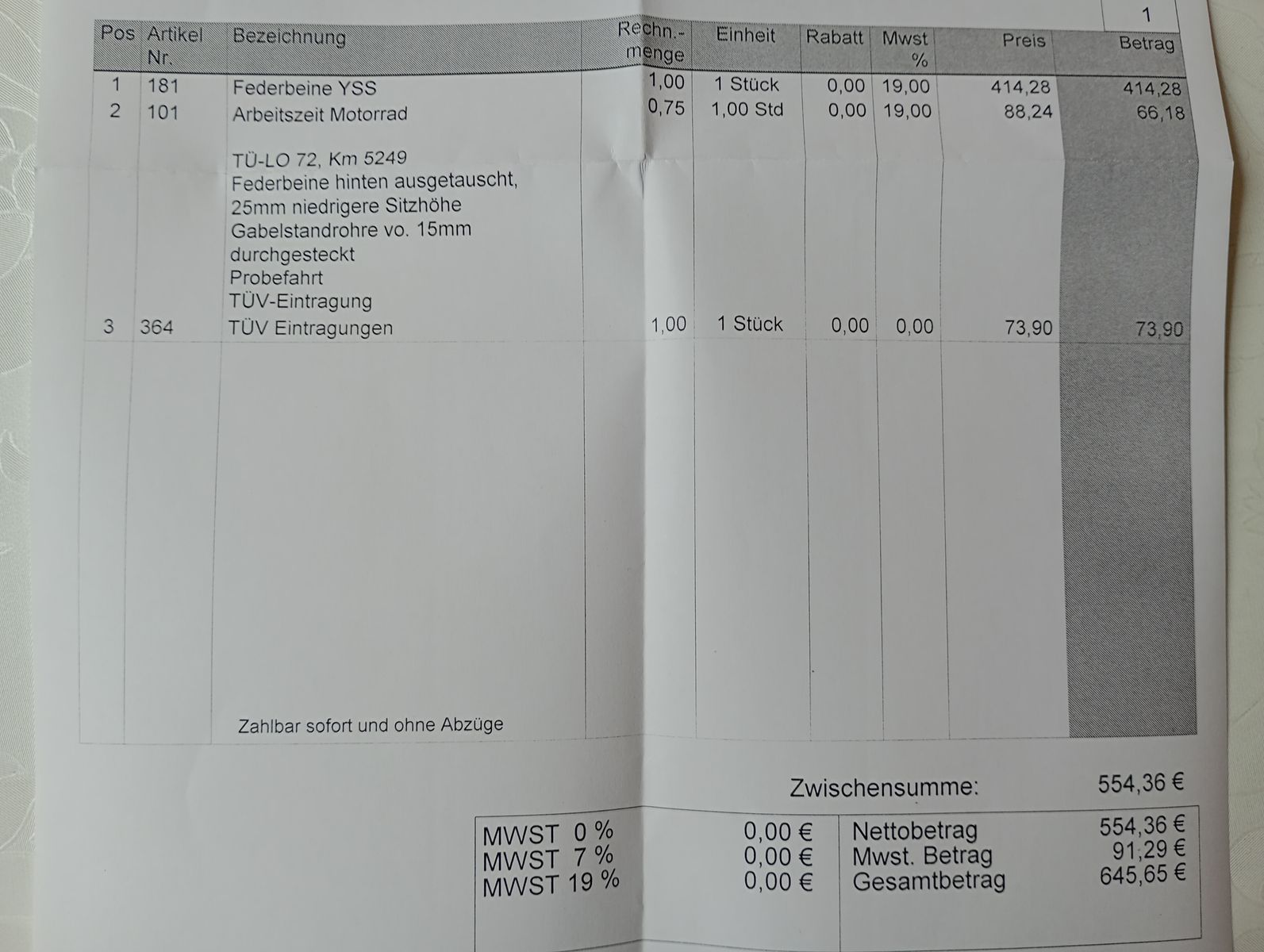 Als nächstes vorne noch Gabelöl und beim anstehenden Reifenwechsel auch gleich anständige Radlager