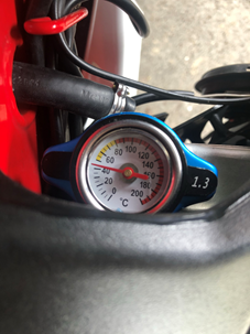 Die Lieferzeit beträgt 18 Tage (kommt aus China). Der Kühlerdeckel ist akzeptabel verarbeitet. Leider lässt er sich sehr schwer anschrauben. Ich musste dafür den Tank abnehmen. Die Skala ist während der Fahrt erst ab 60°C ablesbar da der Tank den Rest verdeckt. Wie genau das Ganze ist habe ich nicht getestet, für einen ungefähren Wert reicht es alle mal.