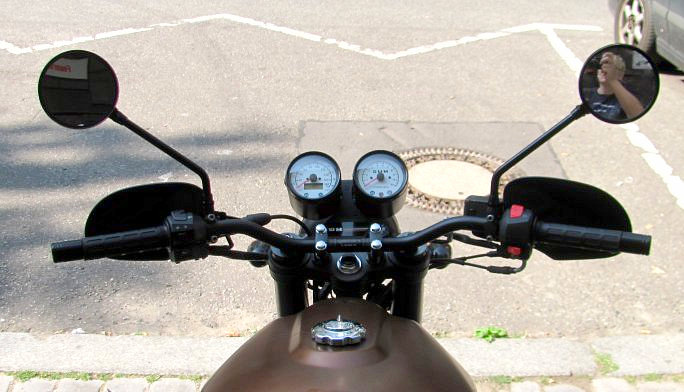 Ich nahm mir was von der Aprilia Pegaso 650, nebst Kupplungsgriff & Bremspumpe. Die Bremspumpe ist besser als die originale.