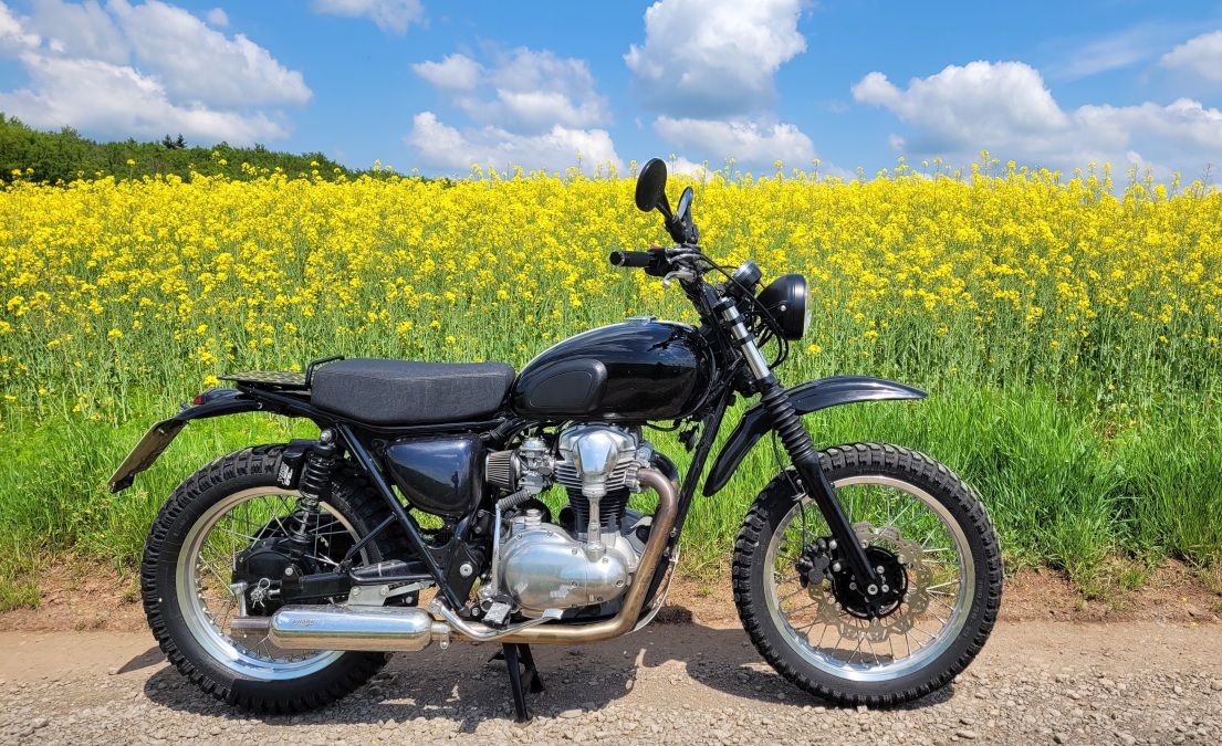 Ich fahre eine Kawa W650 die ich etwas zum Scrambler umgebaut habe.