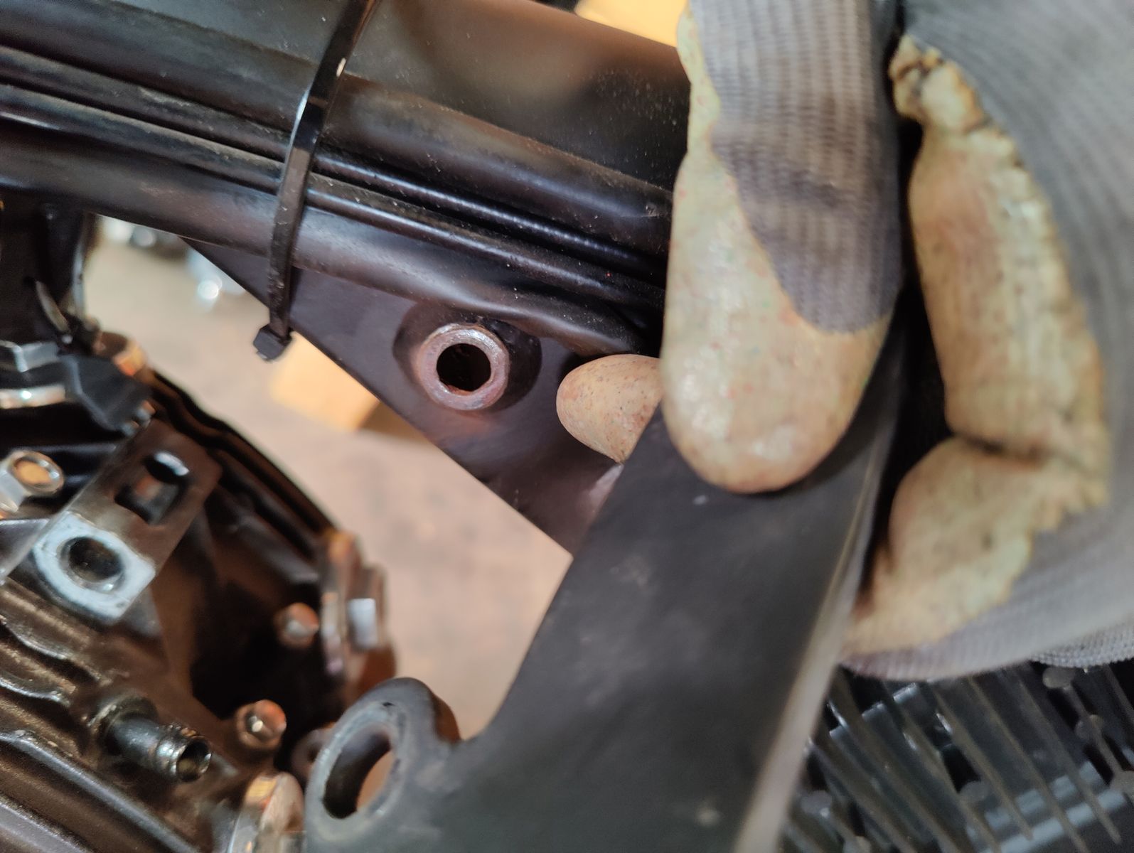 - Die Halterungen der Schalldämpfer unter dem Motorrad (zum Kat) sind beide abgebrochen