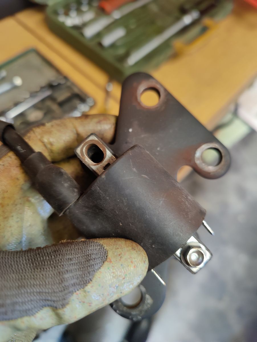 - Meine Zündspule war etwas rötlich verfärbt. Konnte mir nicht erklären woher das kam. Heute die Erleuchtung. Die zwei Halteschienen für den Ventildeckel waren am Rahmen nicht fest. Die Schrauben hatten sich gelockert und die rote Verfärbungen kam vom Rost der durch die Vibrationen dann auf der Zündspule niedergegangen ist. Man beachte auch das eine Schraube der Zündspule verschwunden ist