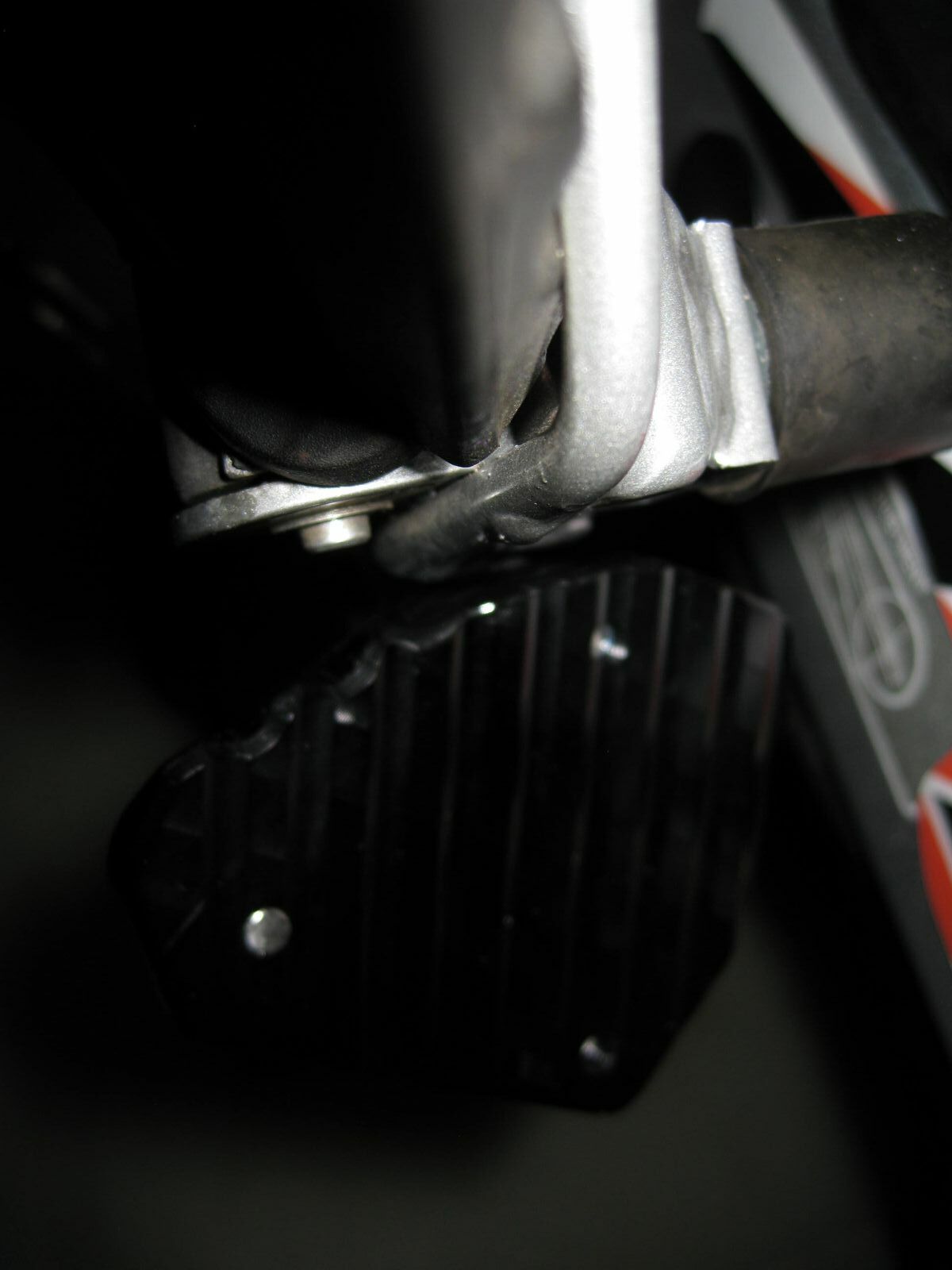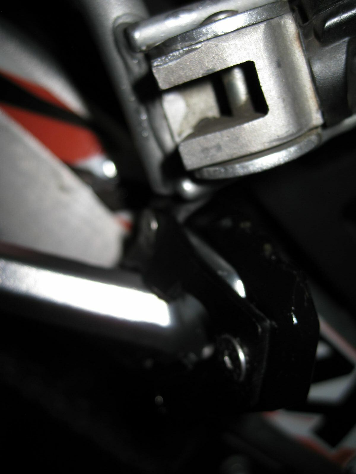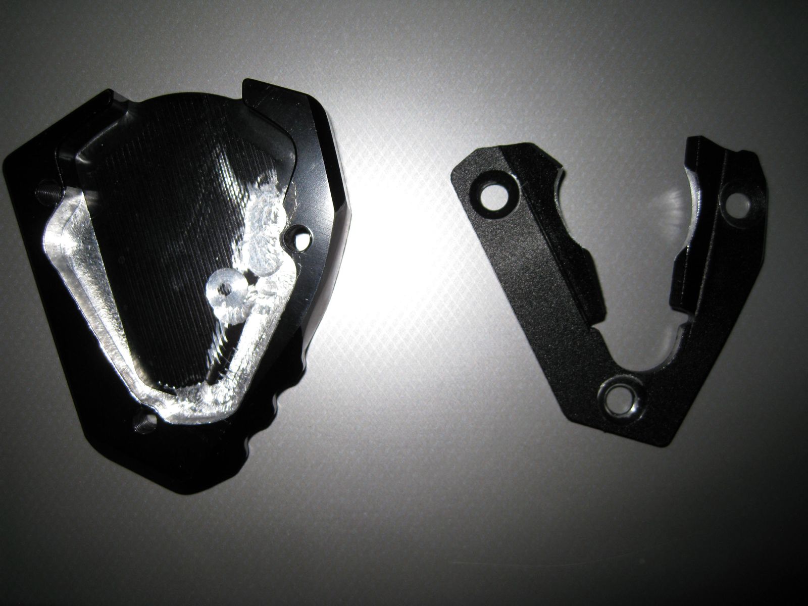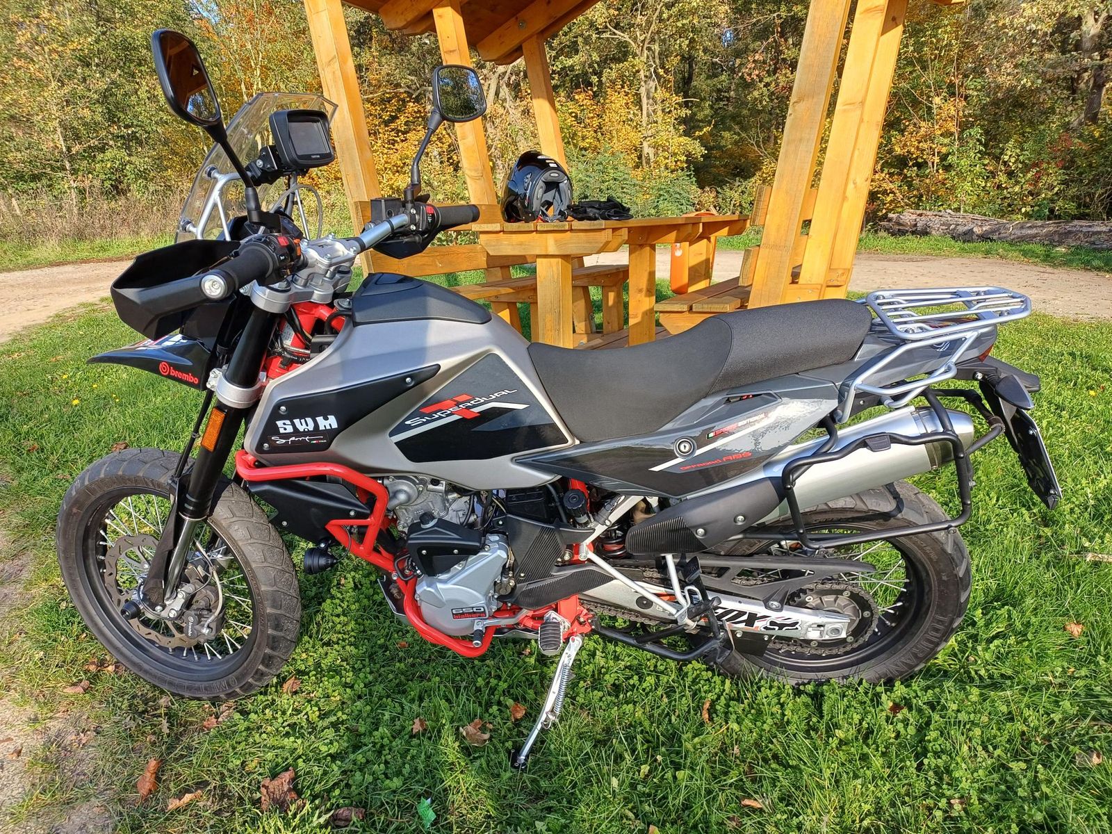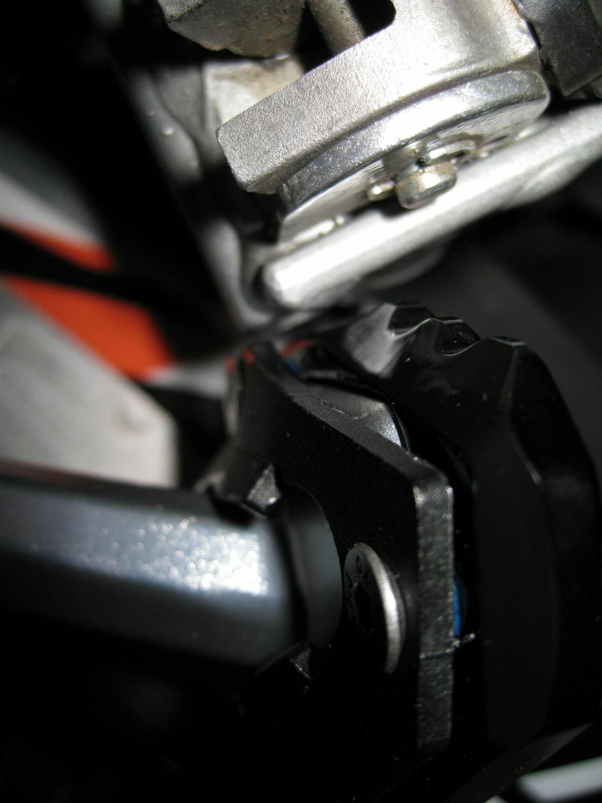 Bei der Superdual T ist ein kürzerer Seitenständer verbaut. Dort gab es auch noch ein Kollisionsproblem mit dem Träger der Fußraste. Auch der Seitenständer musste im Bereich der drei Schrauben angepasst werden. Die Grundplatte musste aufwendig ausgefräst werden. Ideales Werkzeug ist ein Dremel und eine Fräse. Die beigelegten Schrauben waren auch zu kurz.