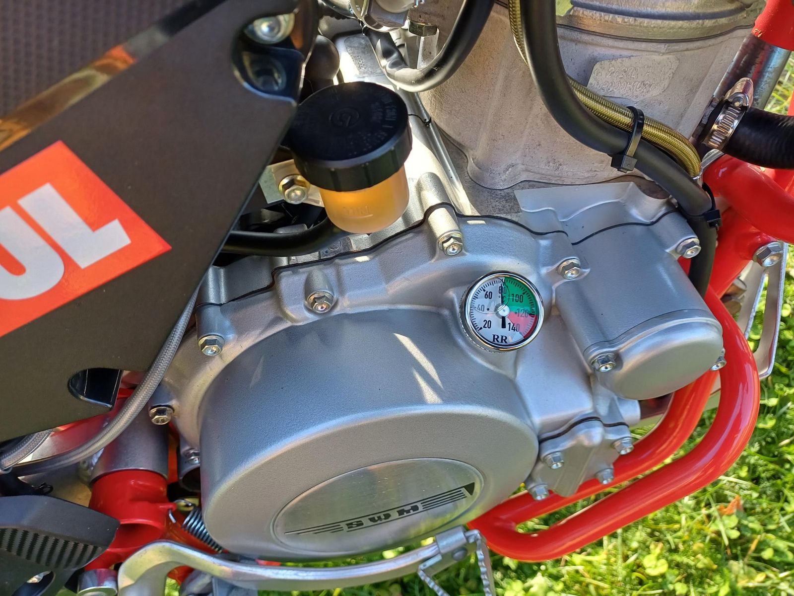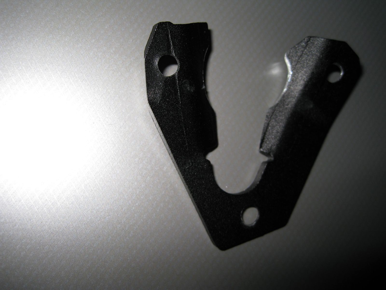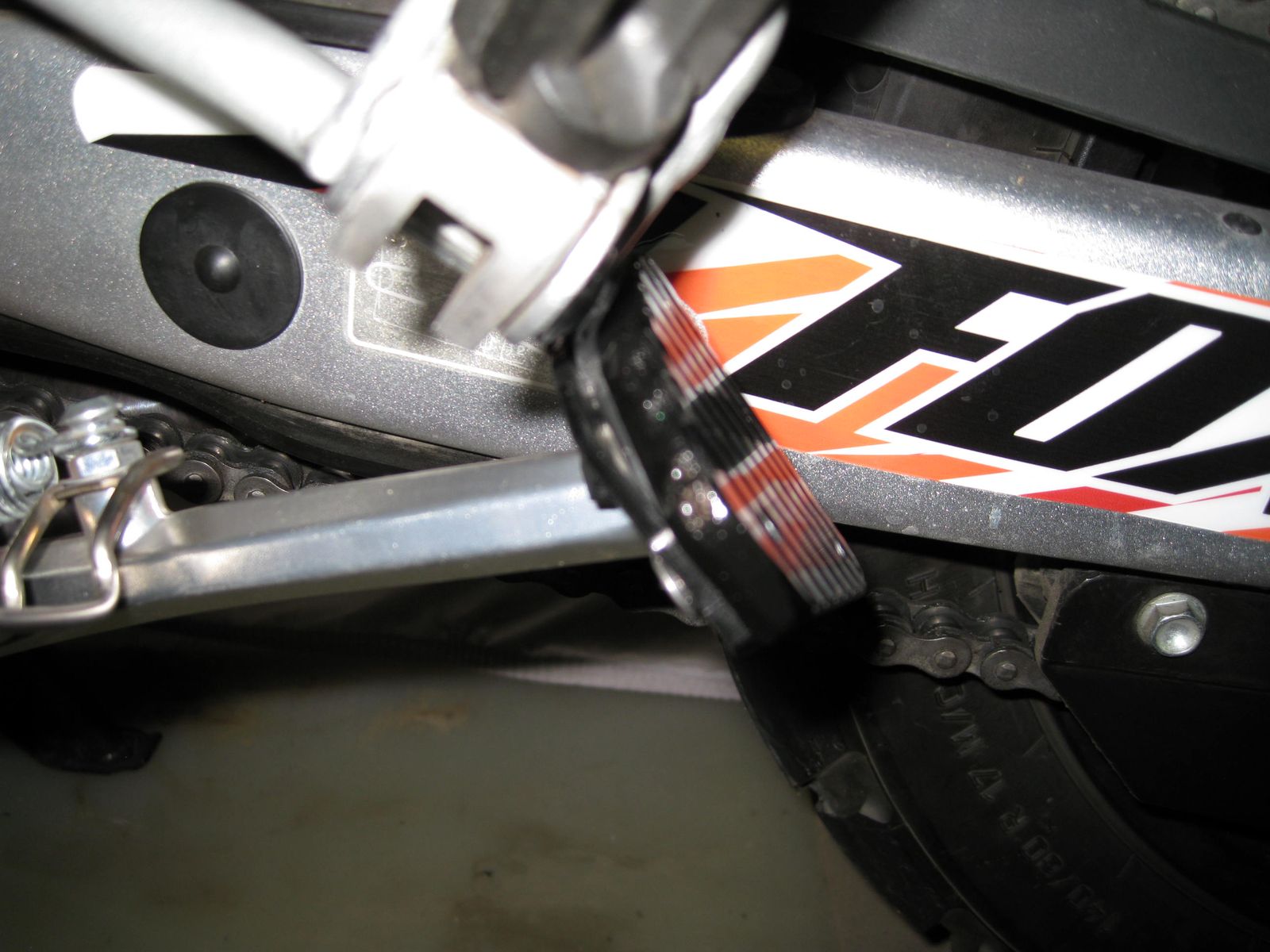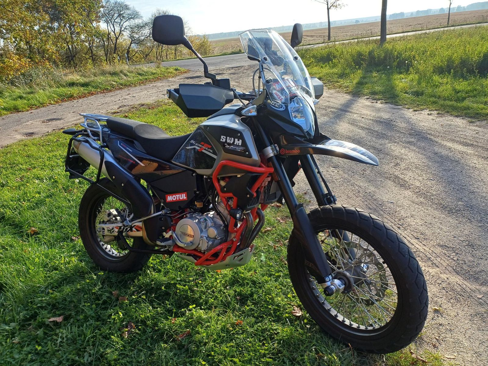 Bei der Superdual T ist ein kürzerer Seitenständer verbaut. Dort gab es auch noch ein Kollisionsproblem mit dem Träger der Fußraste. Auch der Seitenständer musste im Bereich der drei Schrauben angepasst werden. Die Grundplatte musste aufwendig ausgefräst werden. Ideales Werkzeug ist ein Dremel und eine Fräse. Die beigelegten Schrauben waren auch zu kurz.