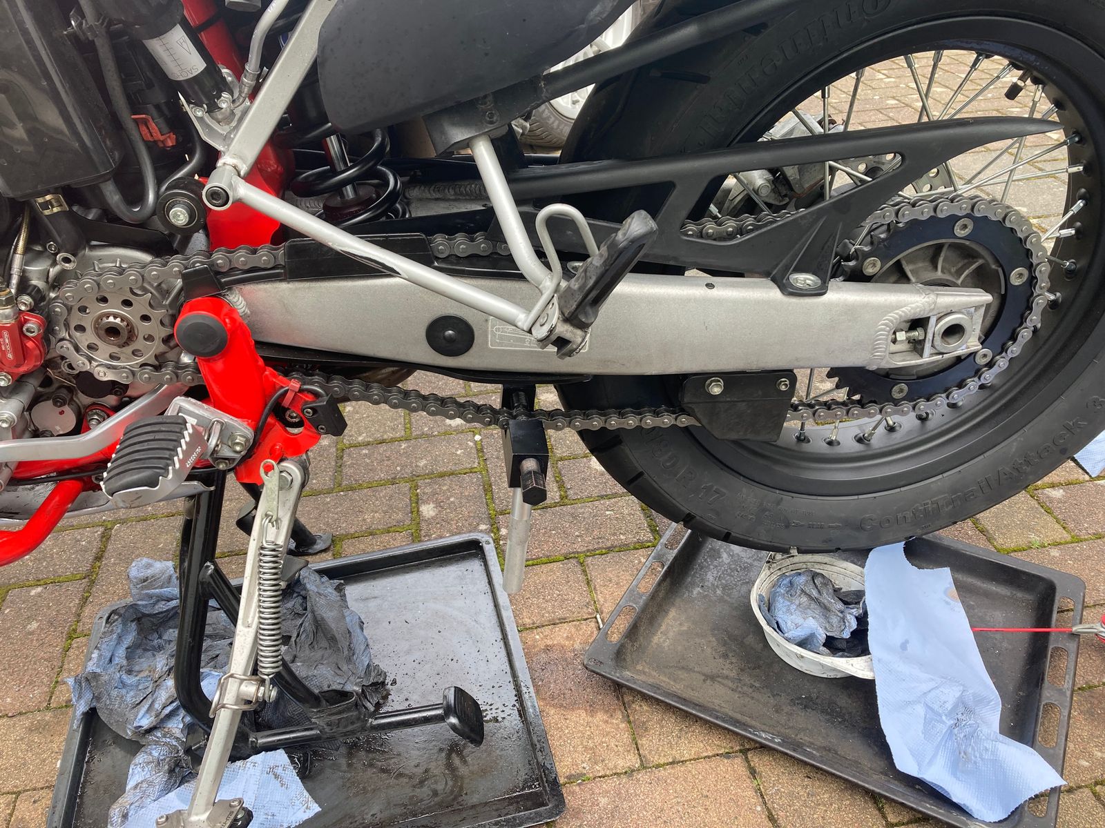 Ich hatte vorher bei Einbau der Räder penibelst den Ketten durchhang eingestellt, aber die neue Kette reduziert extrem das Lastwechselverhalten , auch das eh nur wenig spürbare konstantfahr ruckeln ist fast nicht mehr spürbar