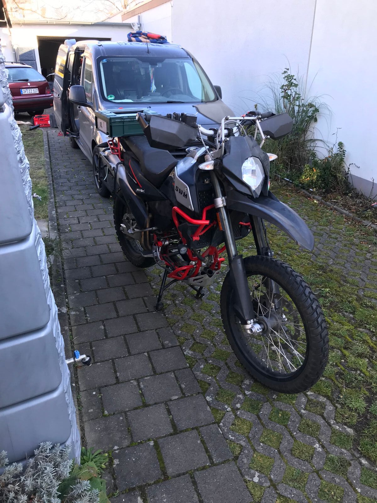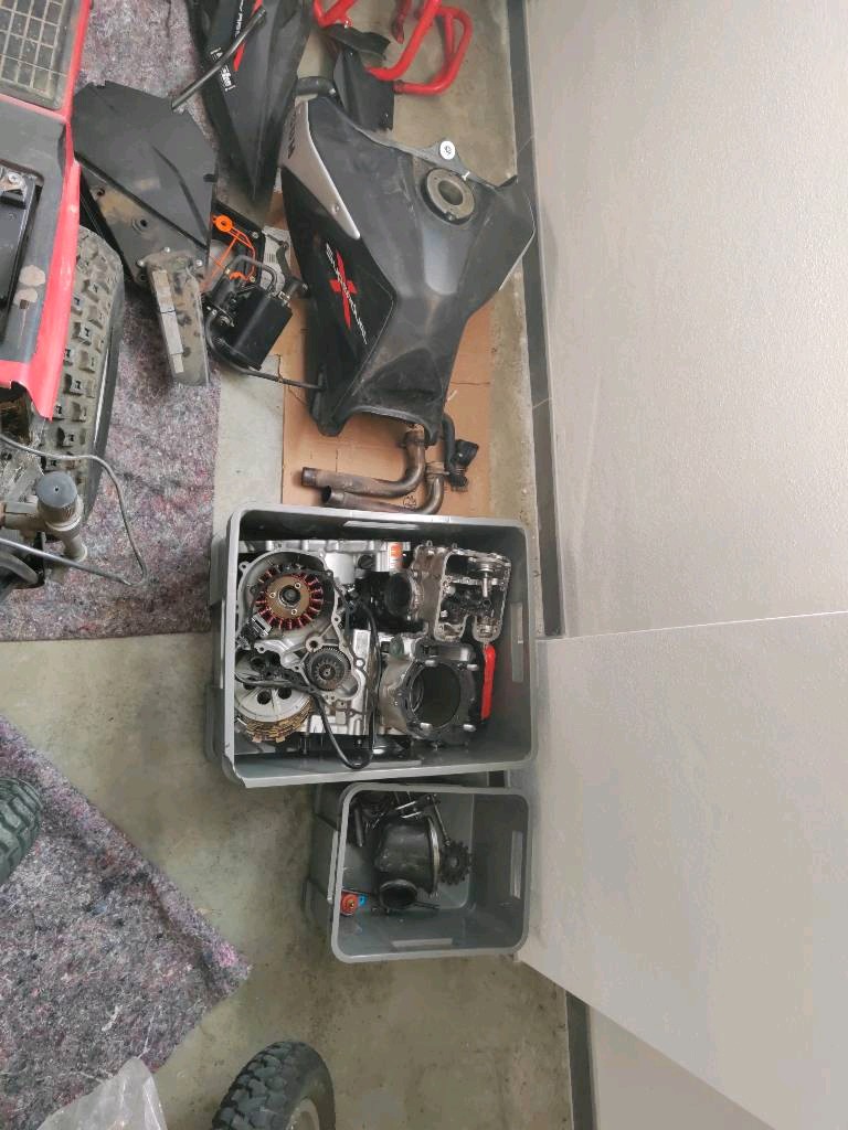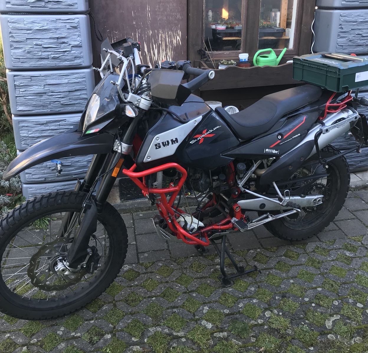 da ich ja eine funktionierende SWM Superdual X habe und sie weiterhin benutzen möchte, und vorzugsweise mir ein Paar ersatzteile hinlegen wollte und zusätzlich lernen will wie der Motor zu warten ist, hab ich günstig ein gesamten Teile Spender gekauft mit Motorschaden.