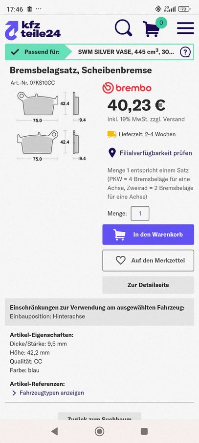 Six Days 500 - Bremsbeläge Hinten