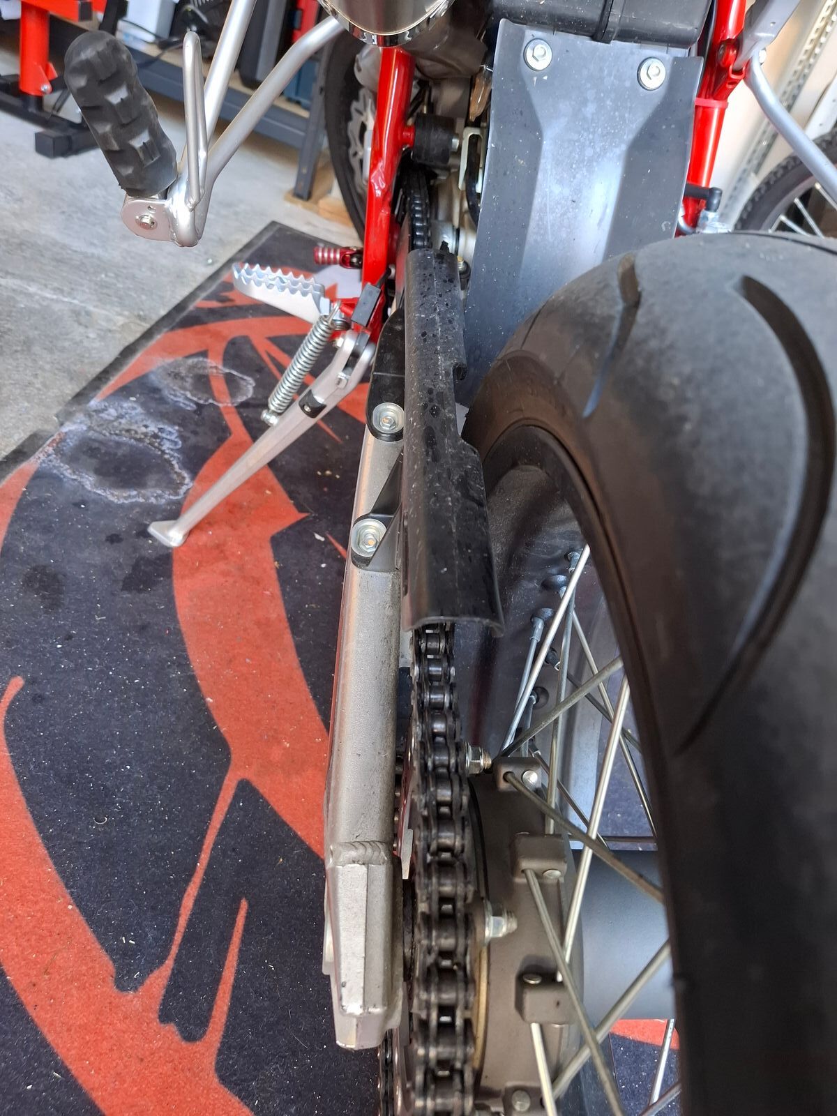 Die Inspektion hat länger gedauet als gedacht, ich hole das Motorrad am Montag ab. Er hat den Kettenschutz mit gewechselt. Für die Inspektion mit Wechsel des Kettenschutzes will er knapp 300 Euro. Er hatte mir zuvor mal erzählt, dass die erste Inspektion 270 Euro kostet. Daher scheint der Preis erstmal in Ordnung. Ich habe ihn gebeten den alten Kettenschutz aufzuheben, ich schicke Bilder davon an SWM und versuche das selbst zu klären.