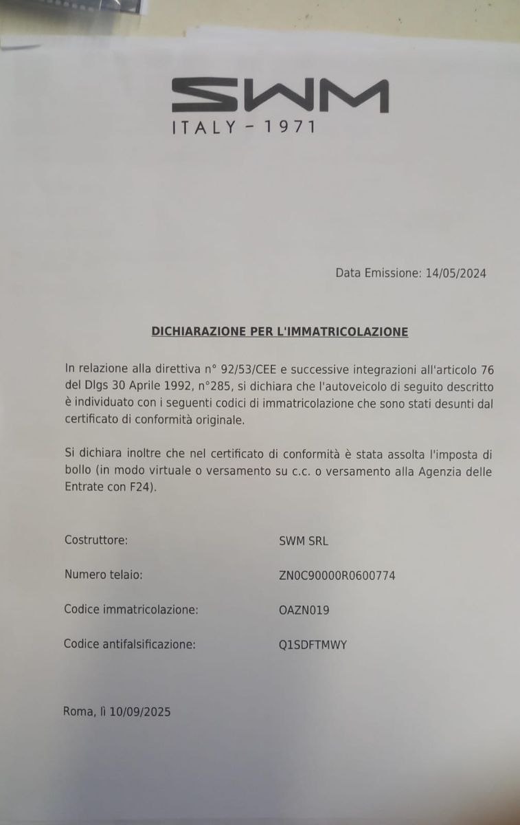 Da ich beabsichtige eine SWM aus Italien zu importieren