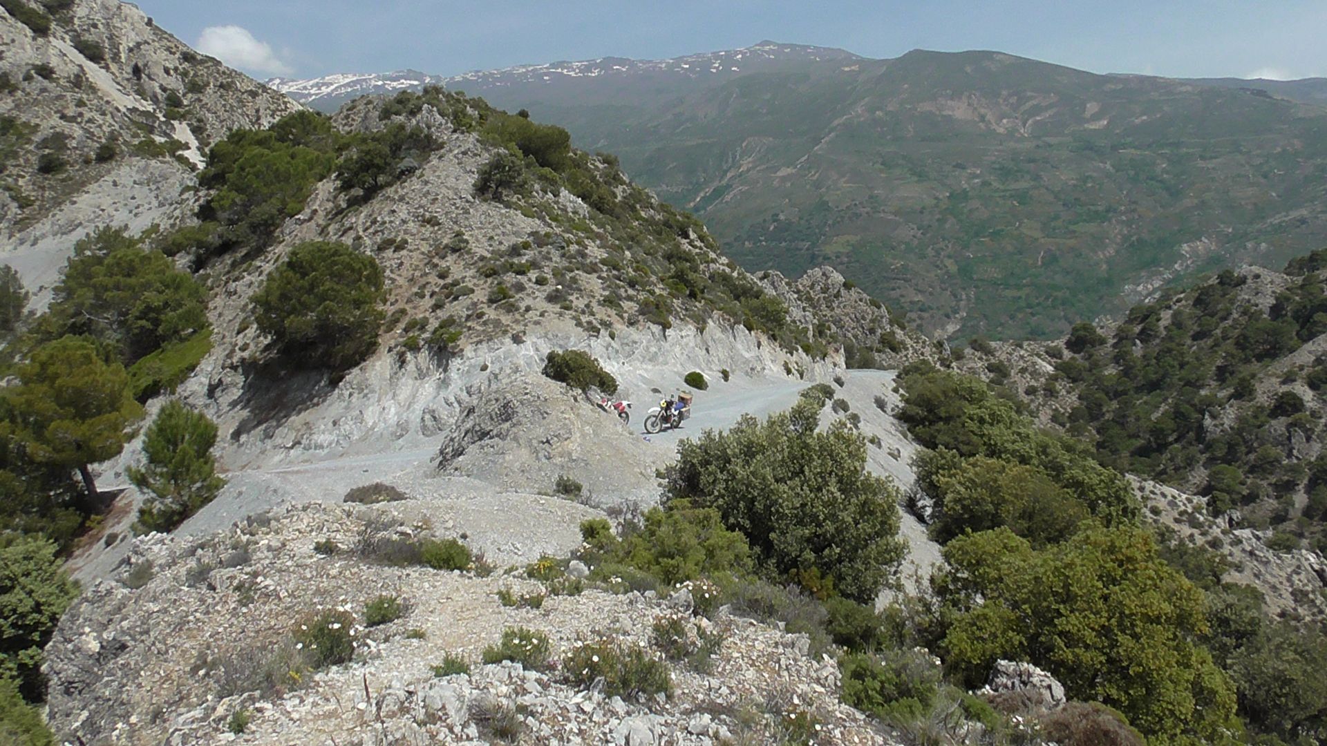 Die Honigtour. Einfahrt direkt untem im Ort durch den Parque Natural. Beginn am "Honigmuseum" und dann durch die Bergwelt Andalusiens. Grandiose, kurvenreiche Schottertour Richtung Granada. Zischenstopps in kleinsten Bergdörfern mit so engen Gassen das man die Ellenbogen einziehen muß. Rücktour über Schotterpässe von bis zu 2000 Metern Höhe.