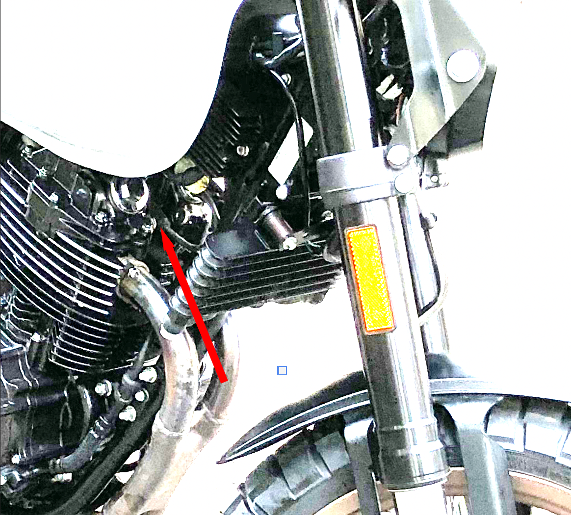 Ich habe schon etliche Male bei anderen Motoren die Kerze gewechselt resp. geputzt, aber bei der Outlaw, schaff ich es echt nicht. Aus meiner Sicht ein Konstruktionsfehler. Bild: Beim roten Pfeil über dem Auspuff und dem Unterrohr versteckt.