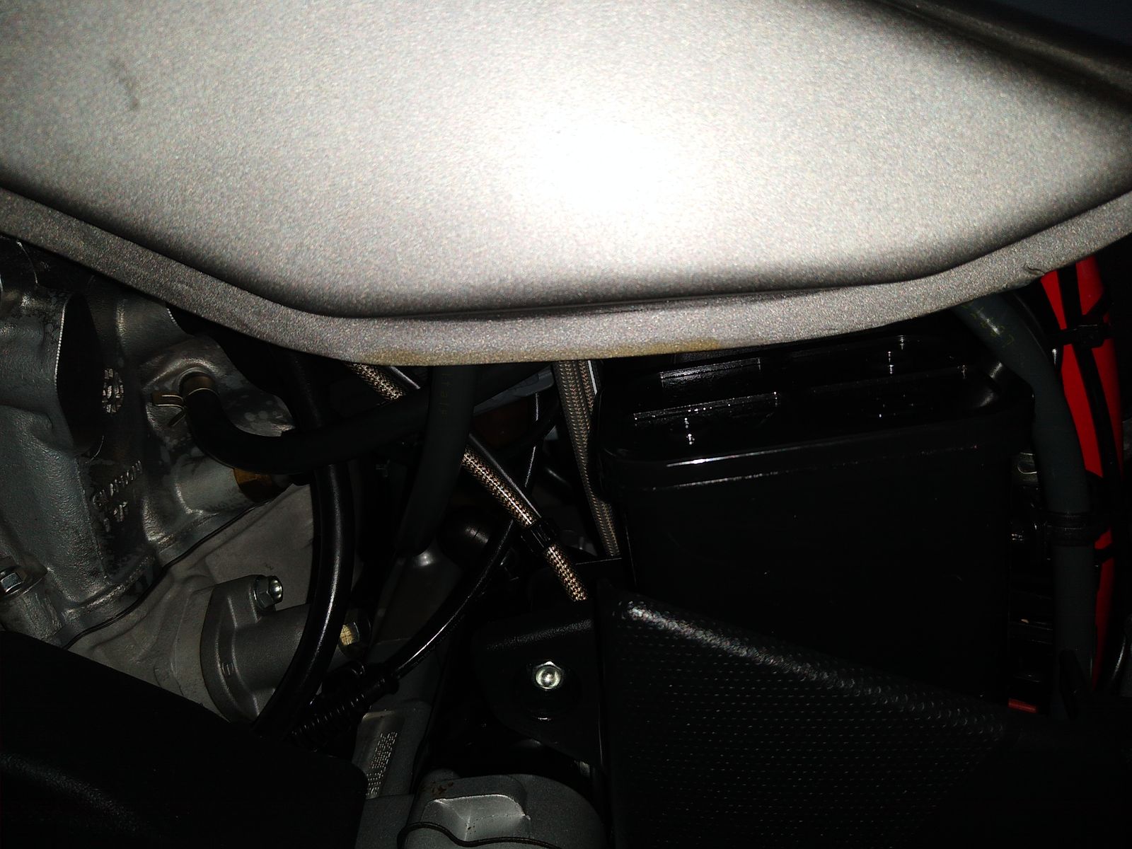 Nun hab ich beim Kauf schon bemerkt, dass an der Unterkante-Außenseite des Tanks auf der linken Seite etwas verfärbt erscheint. Sowas wie Hohlraumversiegelung o.Ä.