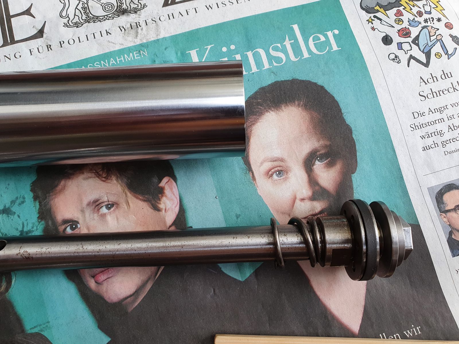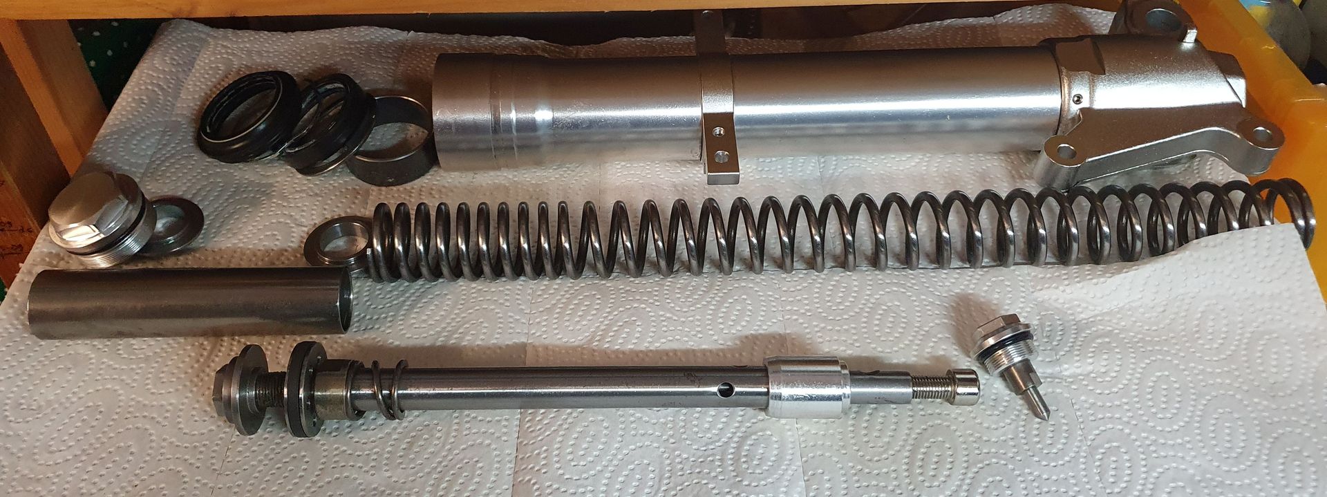 Nach dem Zusammenbau fühlt sich die Federung Dämpfung so an wie der andere Holm. Spätestens am Wochenende baue ich sie ein und hoffe das alles funktioniert ![]()