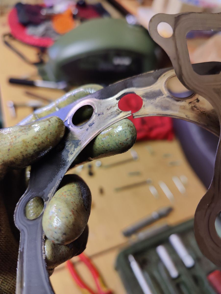 - Mein Auspuff hat sich extrem verzogen und dadurch ist der Krümmer am Zylinderkopf nicht mehr dicht. Ich habe auch schon zwei Schrauben am Krümmer verloren. Nachdem ich die neuen Dichtungen eingebaut hatte und den Krümmer angezogen hab, wollte ich die Endschalldämpfer montieren. Keine Chance. ca. 2 -3 cm Verzug. Entsprechend musste ich den Krümmer wieder lösen, die Endschalldämpfer (noch immer unter Spannung) befestigen und den Krümmer dann wieder anziehen. Beim Gas-Geben ist das Teil wirklich laut. Auch die Krümmermuffen, die zur Befestigung dienen sind bei mir durch die Temperatur total verzogen. Da muss ich wohl mal flexen und schweißen damit ich das wieder ausrichten kann.