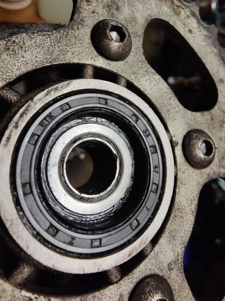 - Ferner hab ich bemerkt, dass der Dichtring am Hinterrad für das Kugellager ziemlich abgescherrt ist. Ich denke auch die Lager hinten sind fertig (durch viel Ladung + Soziusbetrieb ggf. her rührend).