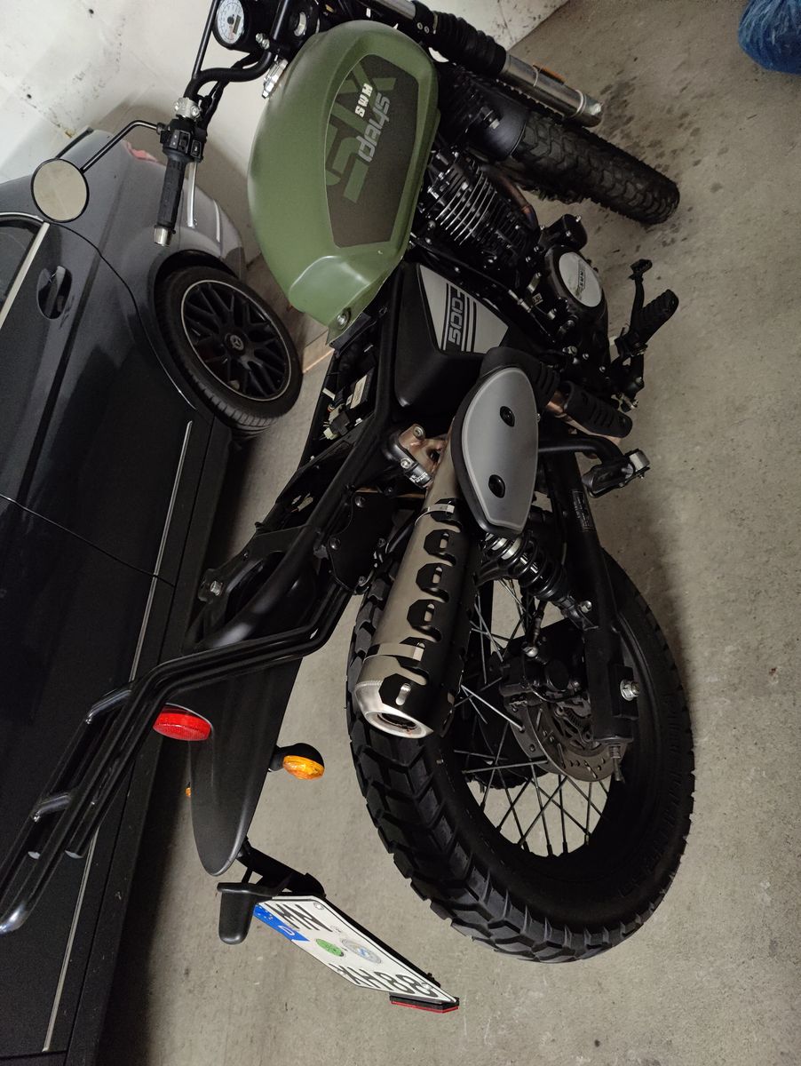 Damit die Satteltaschen überhaupt anbringbar waren, und nicht auf dem Auspuff aufliegen hab ich mir kurzerhand ein Hitzeschutz an den Auspuff angebaut. Das sieht ungefähr so aus... Ich überlege mir gerade in ich nicht den ganzen Auspuff mit so einer Art Hitzeschild bestücke... Mal schauen... Aber dann eine andere Befestigung, da das mit den Schlauchschellen nicht so wirklich toll aussieht.