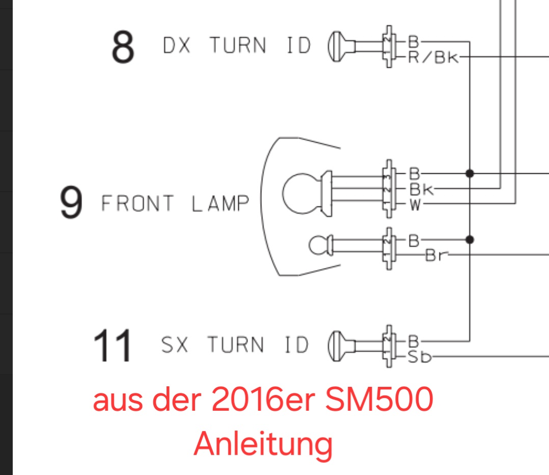 Hab den Schaltplan meiner 2019er RS 500 mit original LED (erster Screenshot des Stromlaufplans) mit dem Deiner Maschine (2. Screenshot) verglichen...sind schonmal identisch...sollte also auf Anhieb funktionieren.