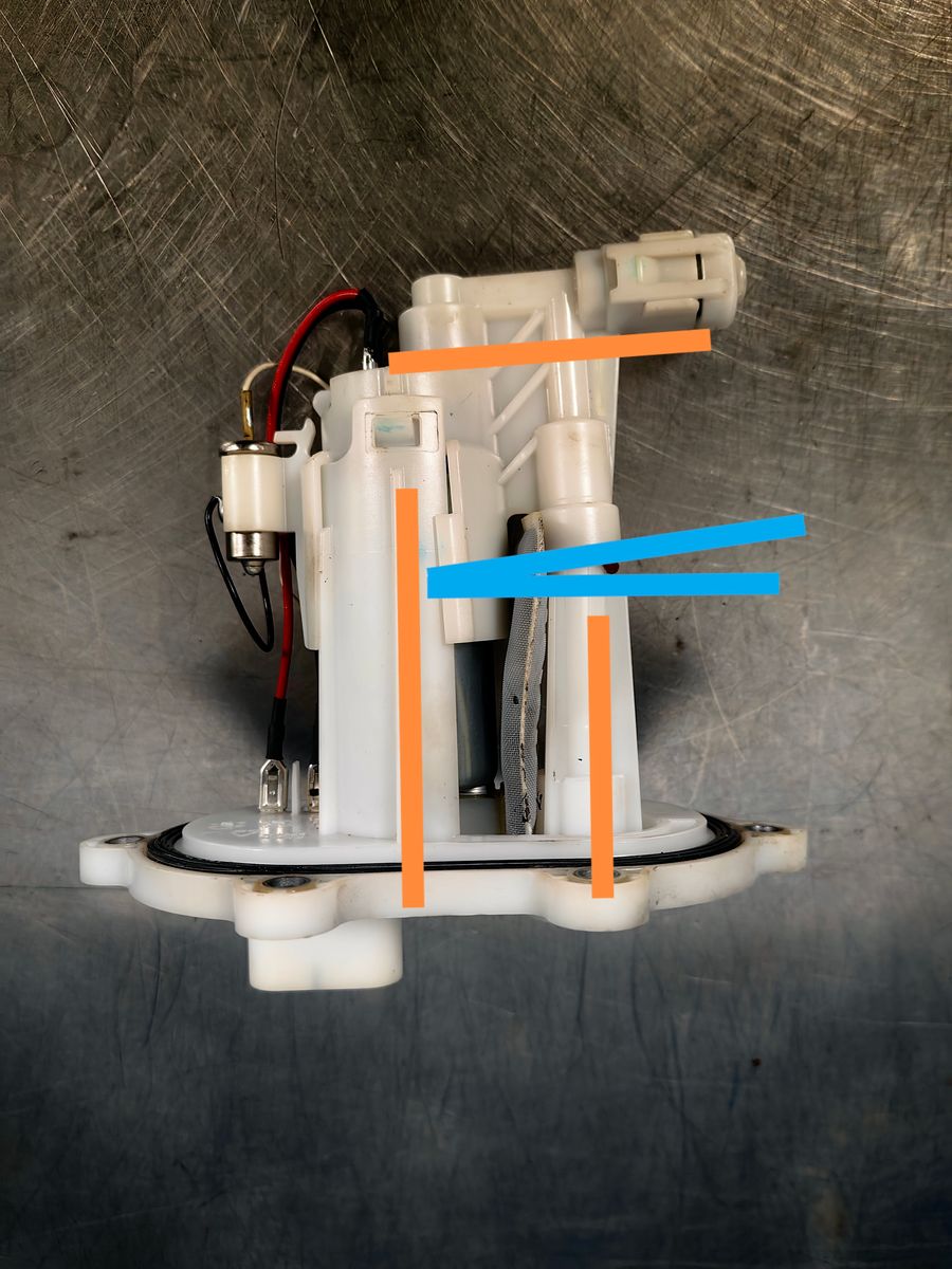Er kann aber nicht weg! deshalb bleibt die Pumpe in Funktion bzw der Benzindruck "funktioniert" bis ca 2,3-max 2,5 bar, darüber bläst es am Ring vorbei.