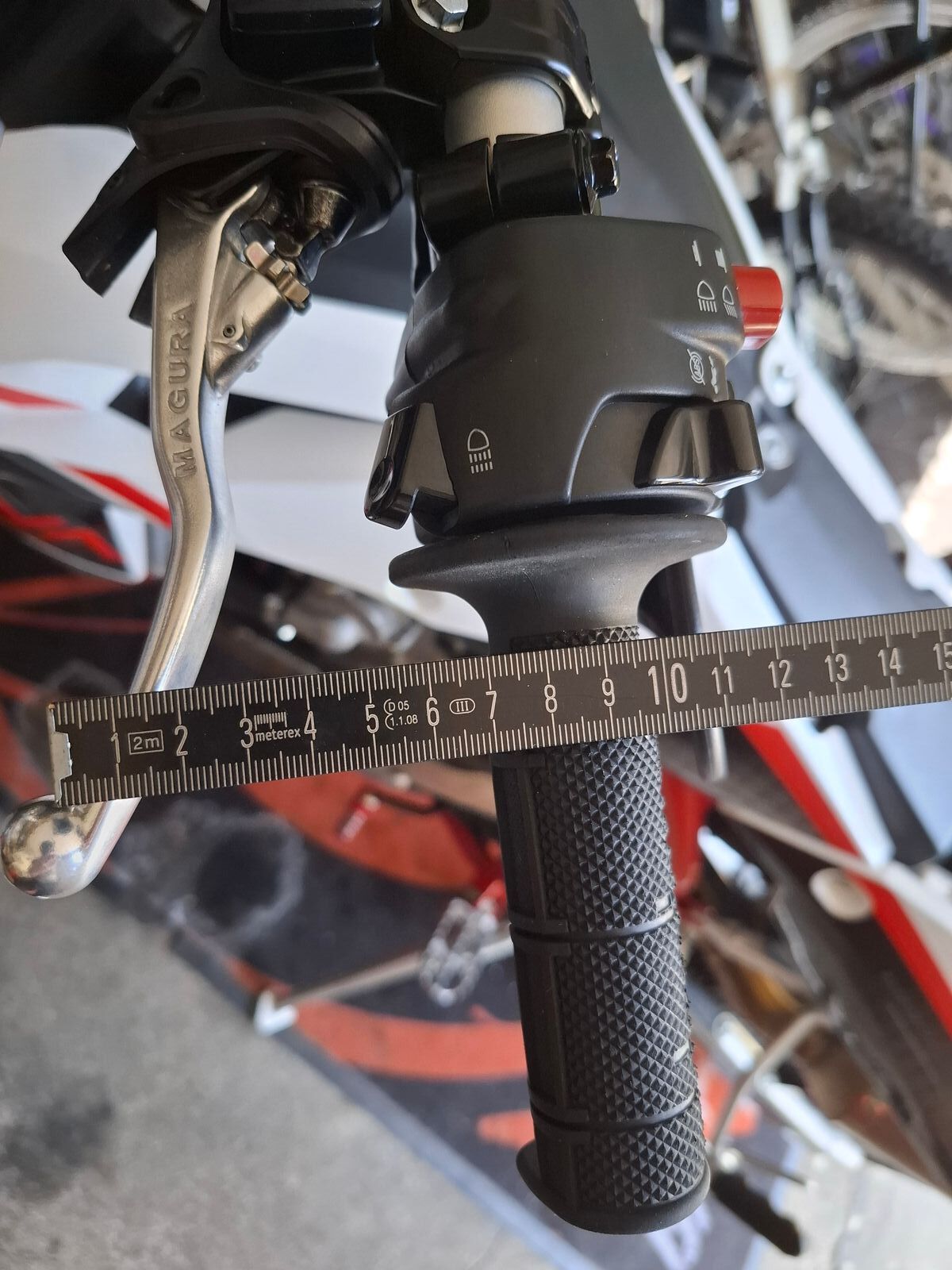 Weiteste Position 12cm vom hinteren Griffende bis zum Ende des Hebels (an der Kugel)