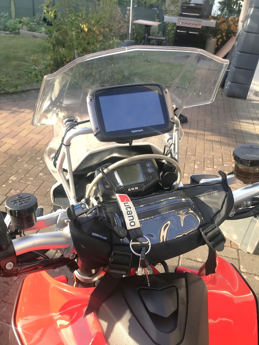 Die nächste Sache war eine werkzueugtasche und eine Halterung für ein Wasserdichtes TomTom Rider navi , so wie eine Uhr , ohne auf dem Digi Tacho knöpfle herum drücken zu müssen