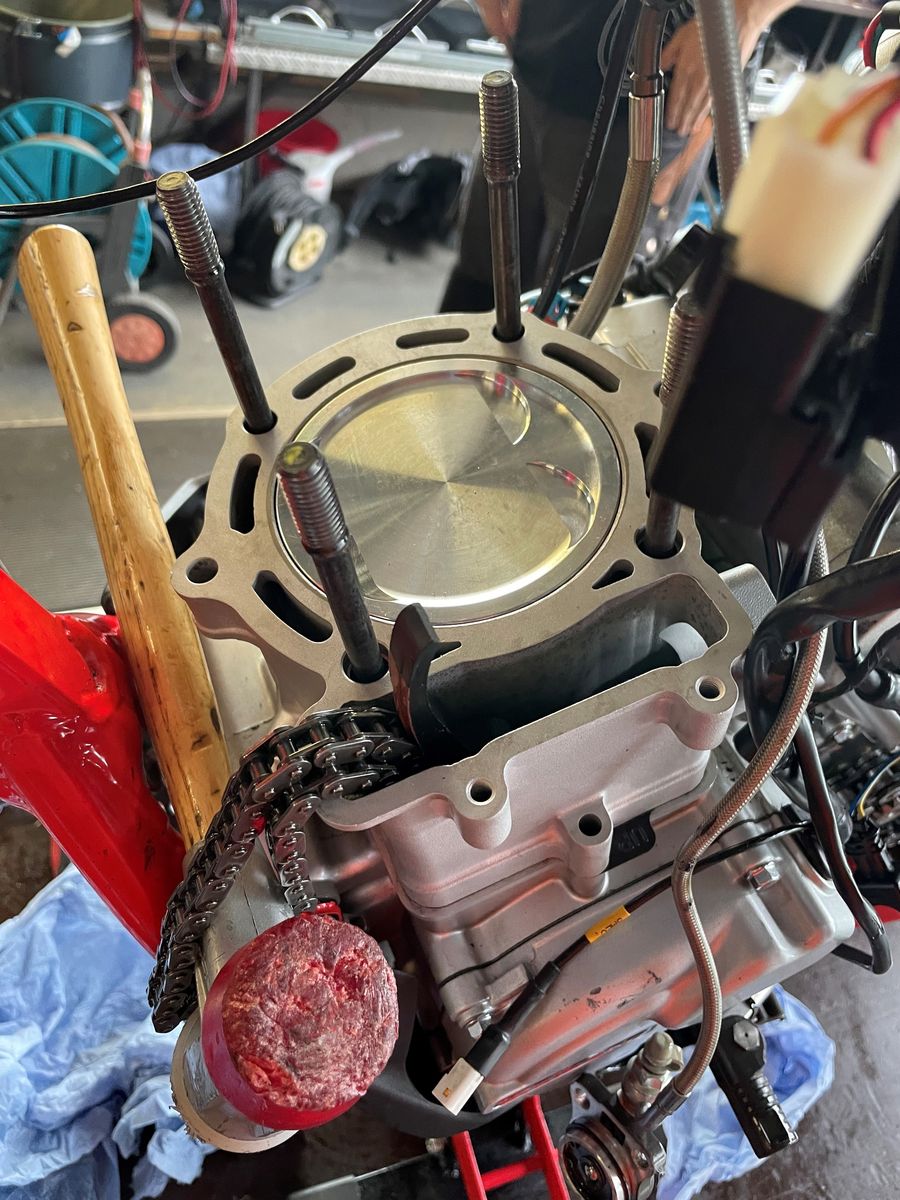 Dann haben wir gleich mal das Topend zerlegt, Zylinder aufgebohrt und 100mm Kolben von CP mit höherer Verdichtung eingebaut.