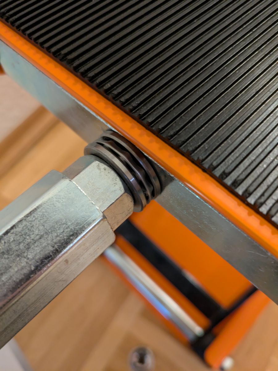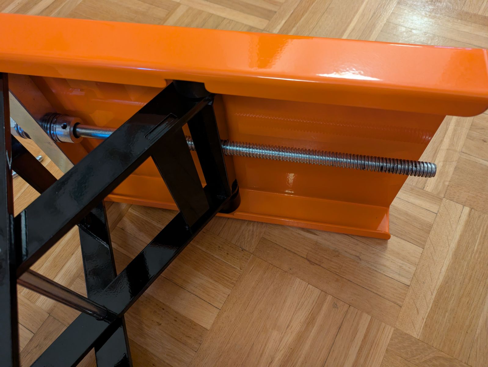Insgesamt ist die Auflagefläche sehr viel größer, als man von den Amazon Bildern erwarten würden. Das hochleiern ist allerdings etwas nervig, man dreht schon wirklich ewig. Vorteil wäre, dass er zusammengeklappt extrem niedrig ist. Man kann bis zu einer Höhe von 34 cm zusätzlich unten eine Stange einschieben, um den Scherenarm zu blockieren.