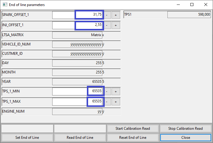 Anschließend habe ich noch die Trim-Werte angepasst, also oben links "SPARK_OFFSET_1" und "INJ_OFFSET_1".