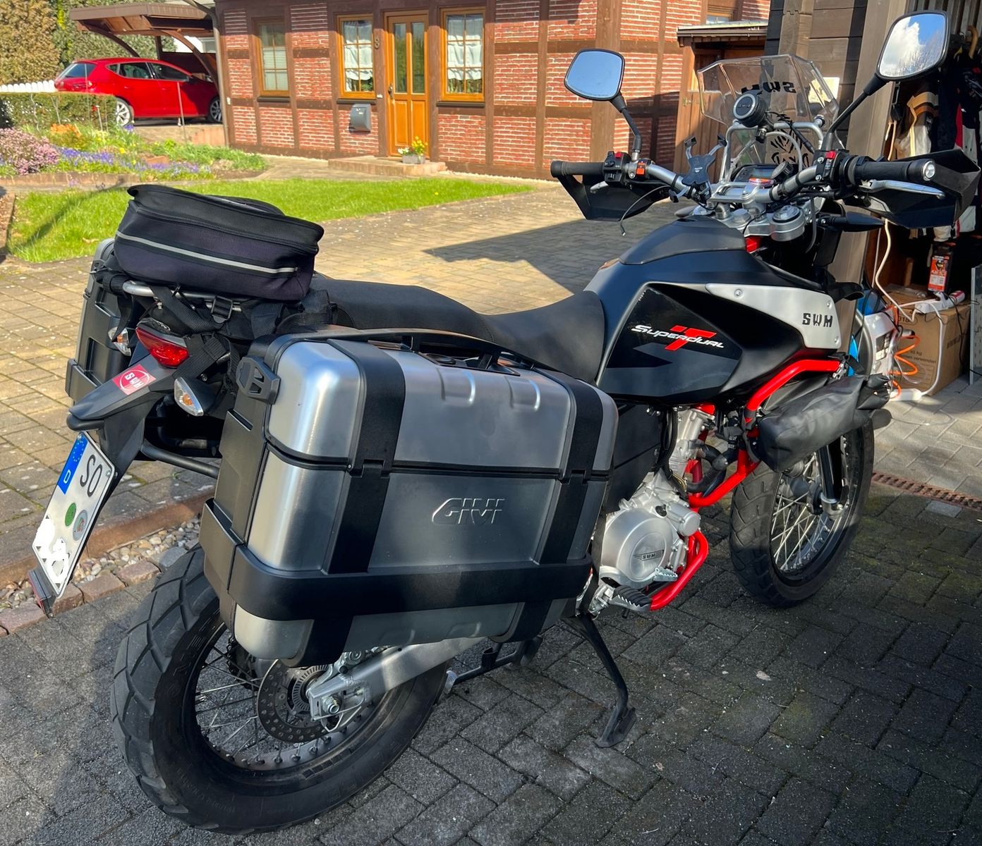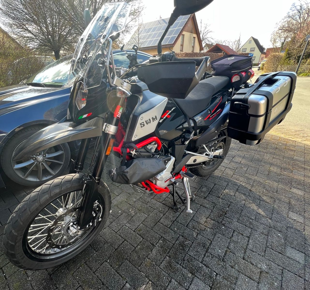 Verkaufe schweren Herzenz meine Superdual, sie wird so gut wie gar nicht mehr bewegt. Meine Superdual wurde fast ausschließlich für Langstrecken verwendet. Unbenutzte GIVI Seitenkoffer sind Teil des Angebots, da ausschließlich Softbags für meine Touren verwendet wurden. Ich habe das SWM Werk in Varese (ehemaliges Husqvarna Werk) in Italien persönlich besichtigt und mich von der Qualität des Motorrads überzeugt. Auf den Fotos sind (kleine) Softbags montiert, die nicht Gegenstand der Veräußerung sind.