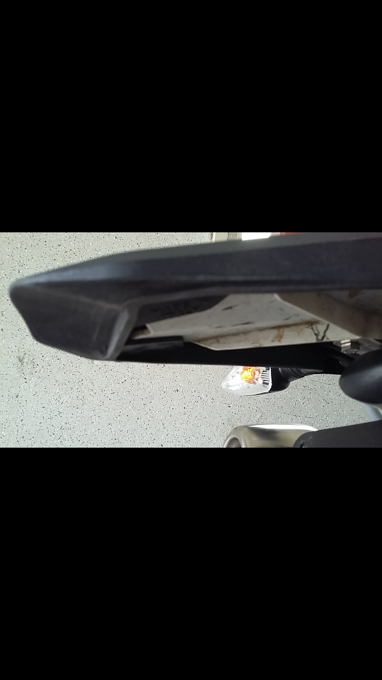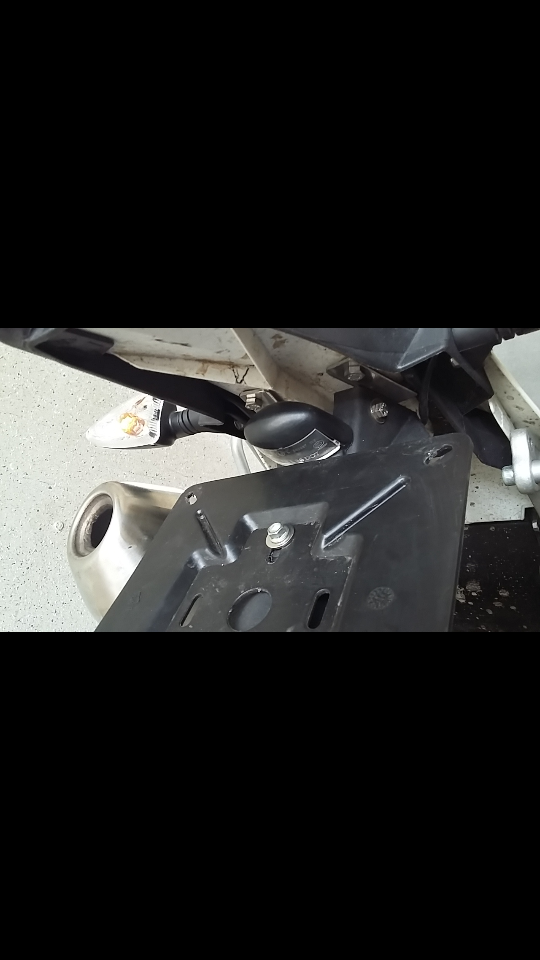 Habe es weg gebaut , abgesägt dann an das abgesägt Teil die Kennzeichenbeuchtung tiefer gebohrt und das ganze Teil mit 2 Aluwinkel mit den 2 halteschrauben des Rücklichtes befestigt . -