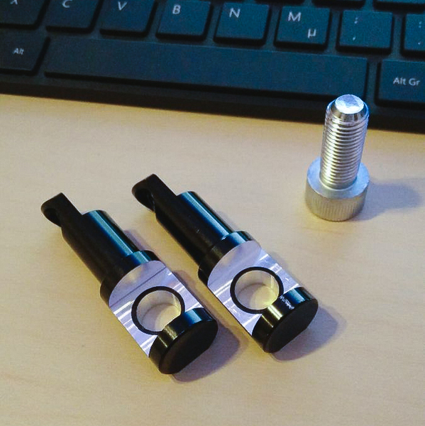 Ich habe die mitgelieferten Halter abgefräst, auf 10mm aufgebohrt und zwei Zylinderschrauben M10x1,25x25 (https://goo.gl/FzXrqw) besorgt - kürzere gehen auch.